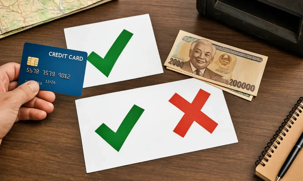 VISAとMastercardはATMだけでなく、ホテルやレストラン、ツアー会社などでも利用できるため、ラオスでも必携のカードブランドです。